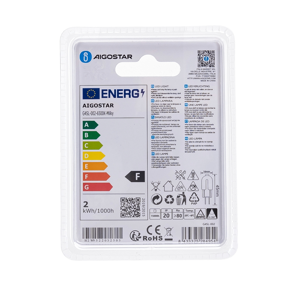 Lampadina Led G4 a Capsula 1,7W SMD opaca Bianco freddo 6500K Aigostar