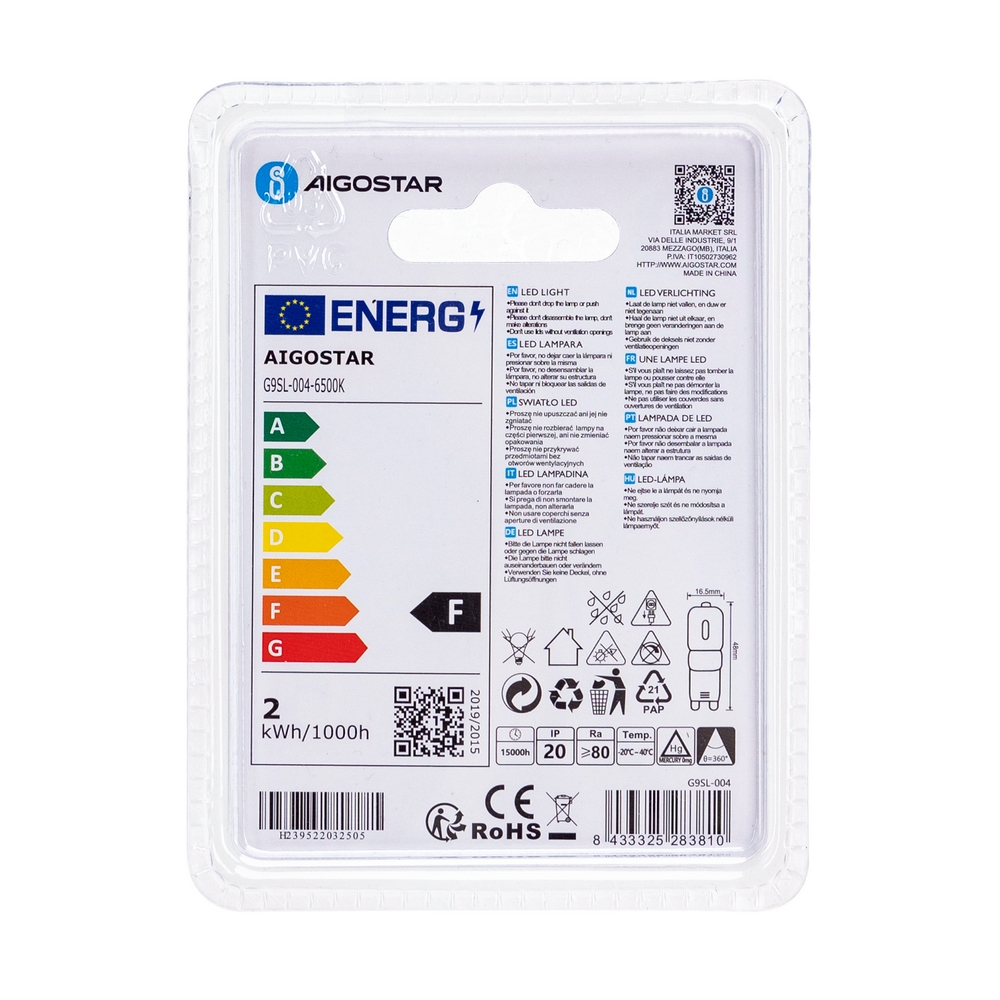 Lampadina Led G9 a Capsula 2W SMD opaca Bianco freddo 6500K Aigostar