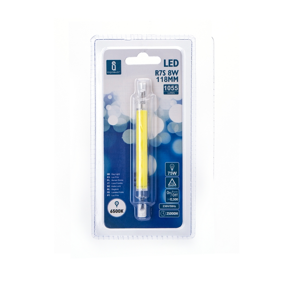 La lampadina a Led con attacco R7S Lineare da 118mm da 9W COB, corrispondente ad una tradizionale lampadina da 72W, è il bilanciamento perfetto tra prestazioni e impatto energetico.