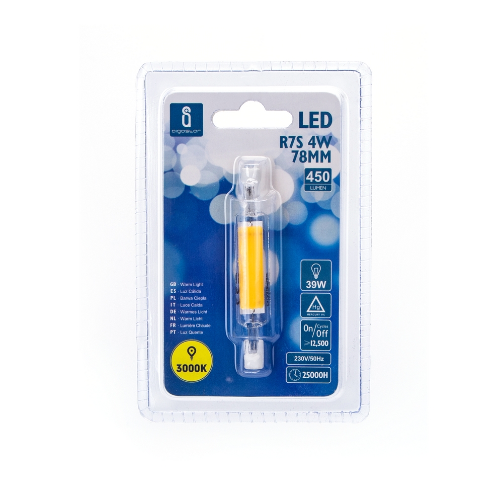 Lampadina Led R7S Lineare 78mm 4W COB in vetro Bianco caldo 3000K Aigostar