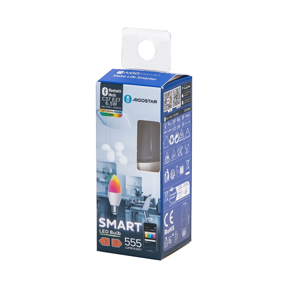 Lampadina Led Smart C37 E27 6.5W Bluetooth Mesh RGB CCT luce regolabile e dimmerabile Aigostar