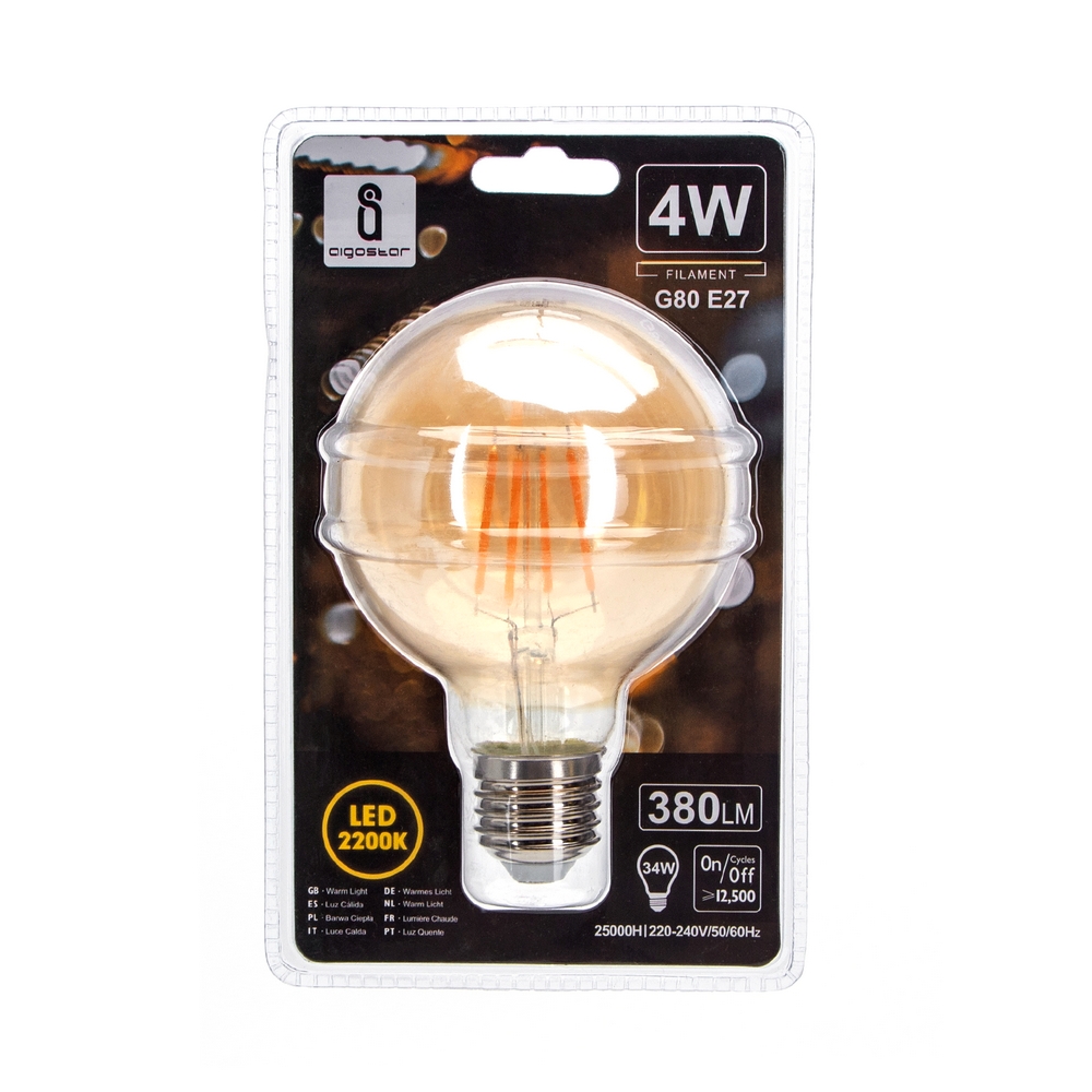 La lampadina a Led Vintage a Filamento con attacco E27, comunemente detto “attacco grande”, con forma G80 a globo 4W, corrispondente ad una tradizionale lampadina da 35W, è la miglior soluzione per contenere i consui e non intaccare le prestazioni.