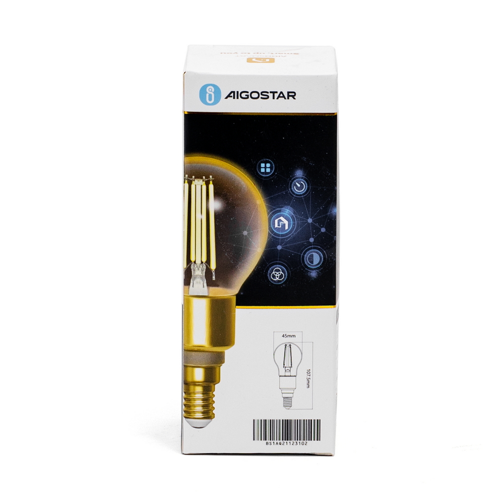 Lampadina Led Vintage a Filamento Smart G45 E14 4,5W WiFi CCT luce regolabile e dimmerabile Aigostar