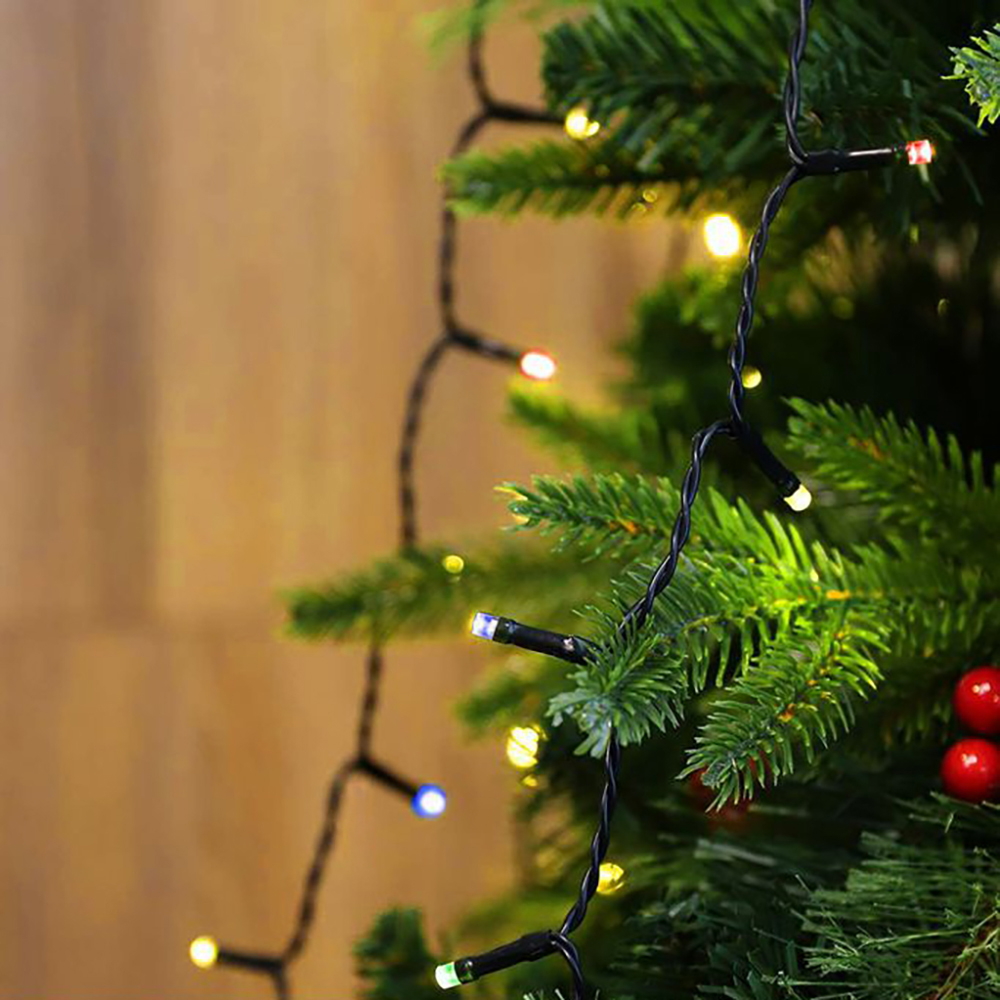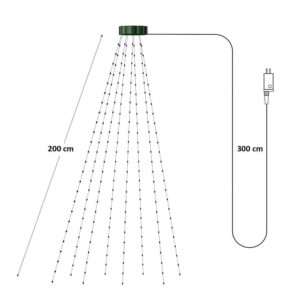 Il mantello è composto da 280 LED dalla brillante tonalità multicolore, distribuiti in modo armonioso su 8 fili verticali che scendono per un’altezza di 2 metri, per un totale di 28 metri, adatto ad alberi con un altezza di 1,8 – 2,1 metri. Grazie al cavo di alimentazione lungo 2 metri, potrai facilmente collegarlo alla presa anche se l’albero è lontano dal muro, garantendo massima libertà di posizionamento.