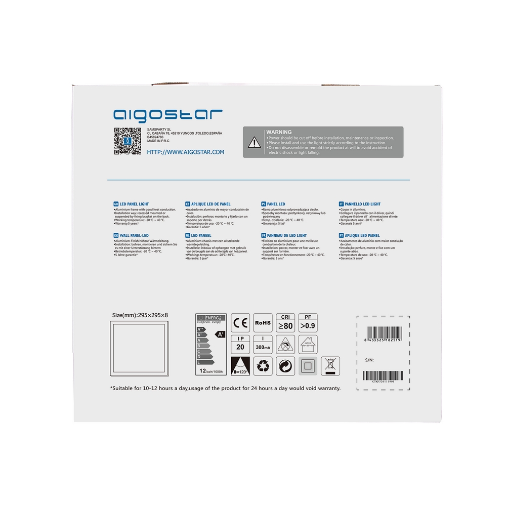 Pannello Led 12W 30x30cm Cornice grigia quadrata Bianco neutro 4000K Aigostar