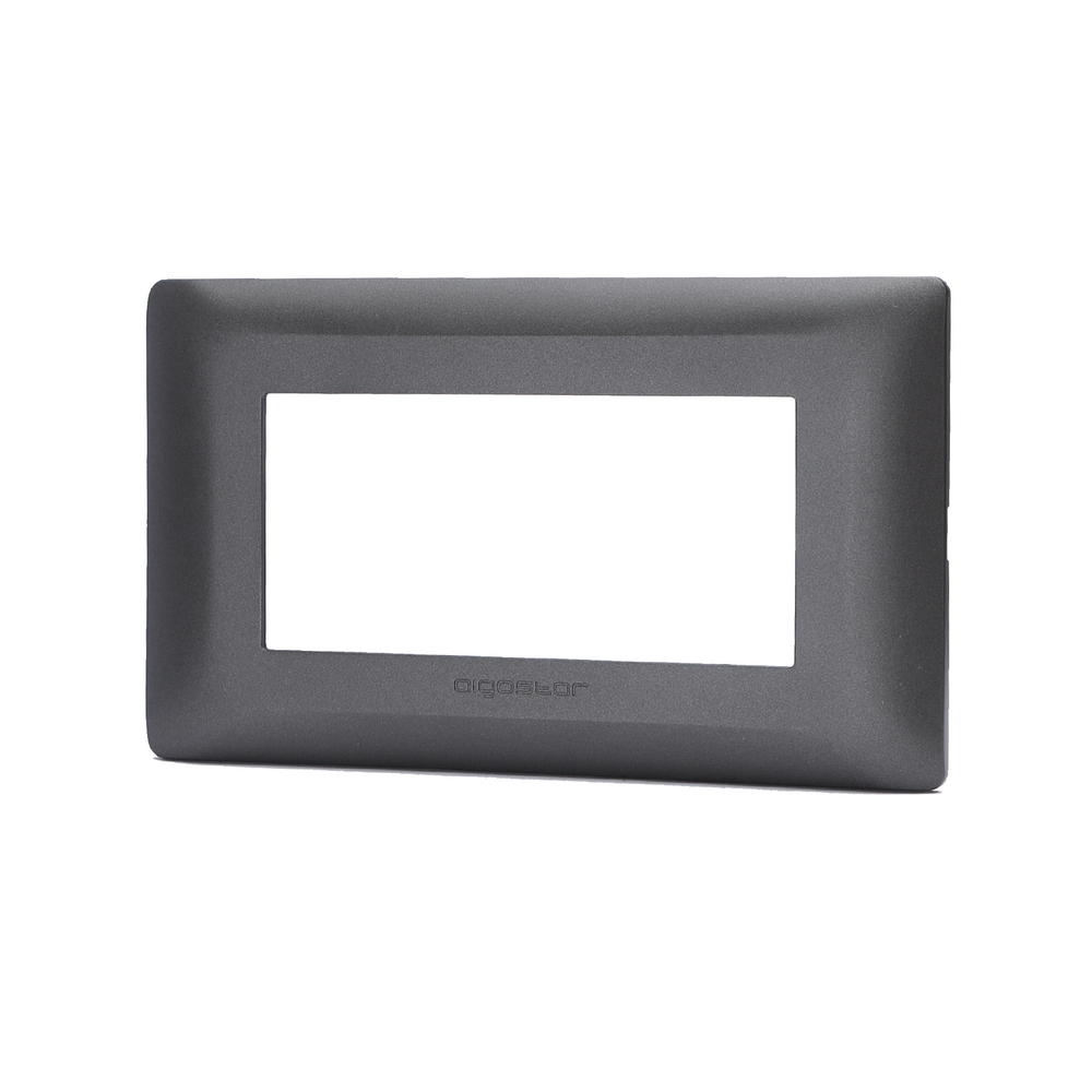 La placca per supporto rettangolare 504 a 4 posti, in plastica e di colore grigio scuro, è compatibile con la serie civile BTicino Matix.