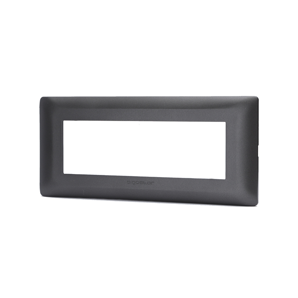 La placca per supporto rettangolare 506 a 6 posti, in plastica e di colore grigio scuro, è compatibile con la serie civile BTicino Matix.