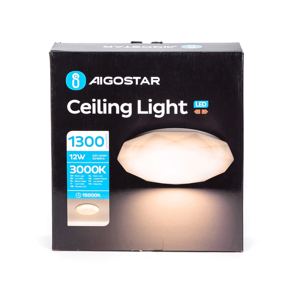 Plafoniera Led 12W Bianca Diamante Bianco caldo 3000K Aigostar