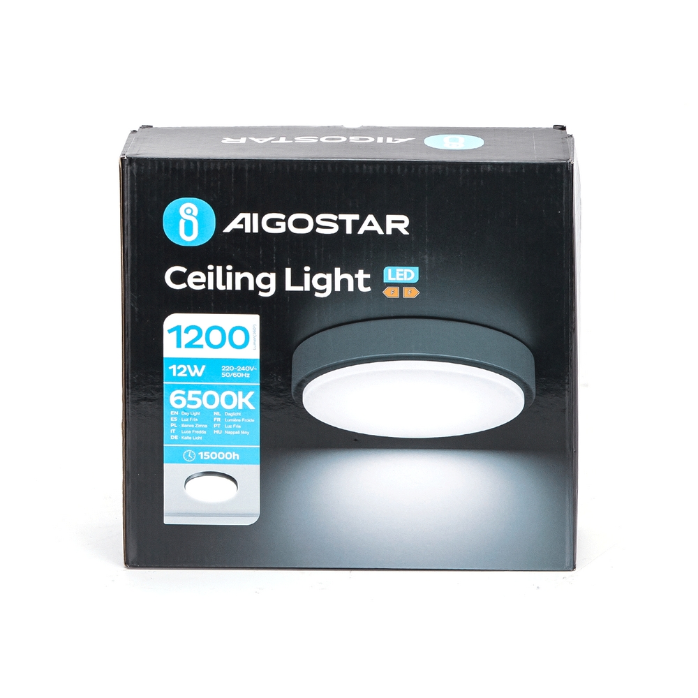 Plafoniera Led 12W Cornice nera rotonda Bianco freddo 6500K Aigostar