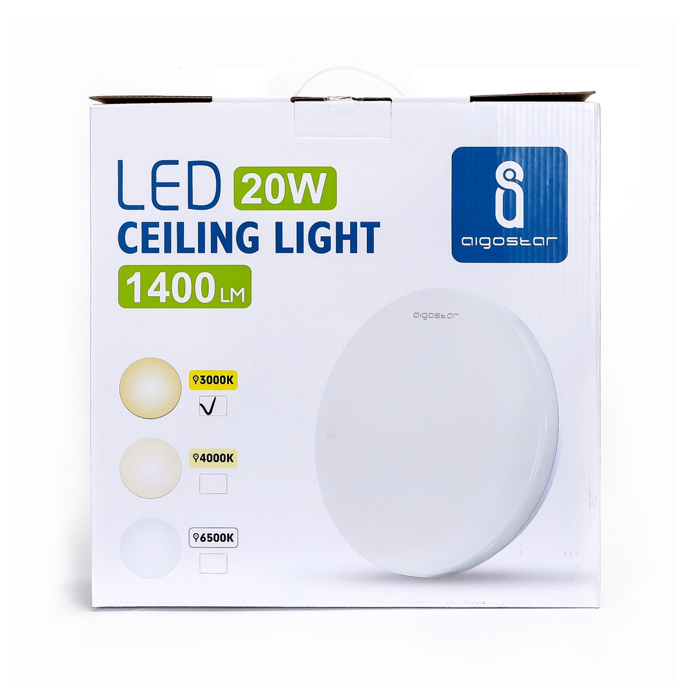 Plafoniera Led 20W Bianca Rotonda Bianco caldo 3000K Aigostar