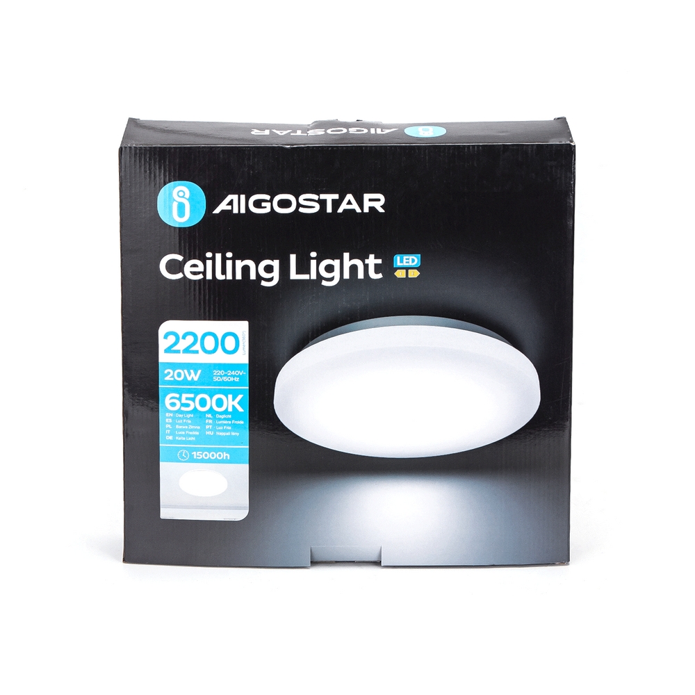 Plafoniera Led 20W Bianca Rotonda Bianco freddo 6500K Aigostar