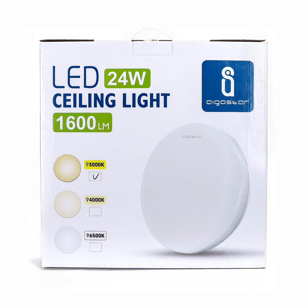 Plafoniera Led 24W Bianca Rotonda Bianco caldo 3000K Aigostar