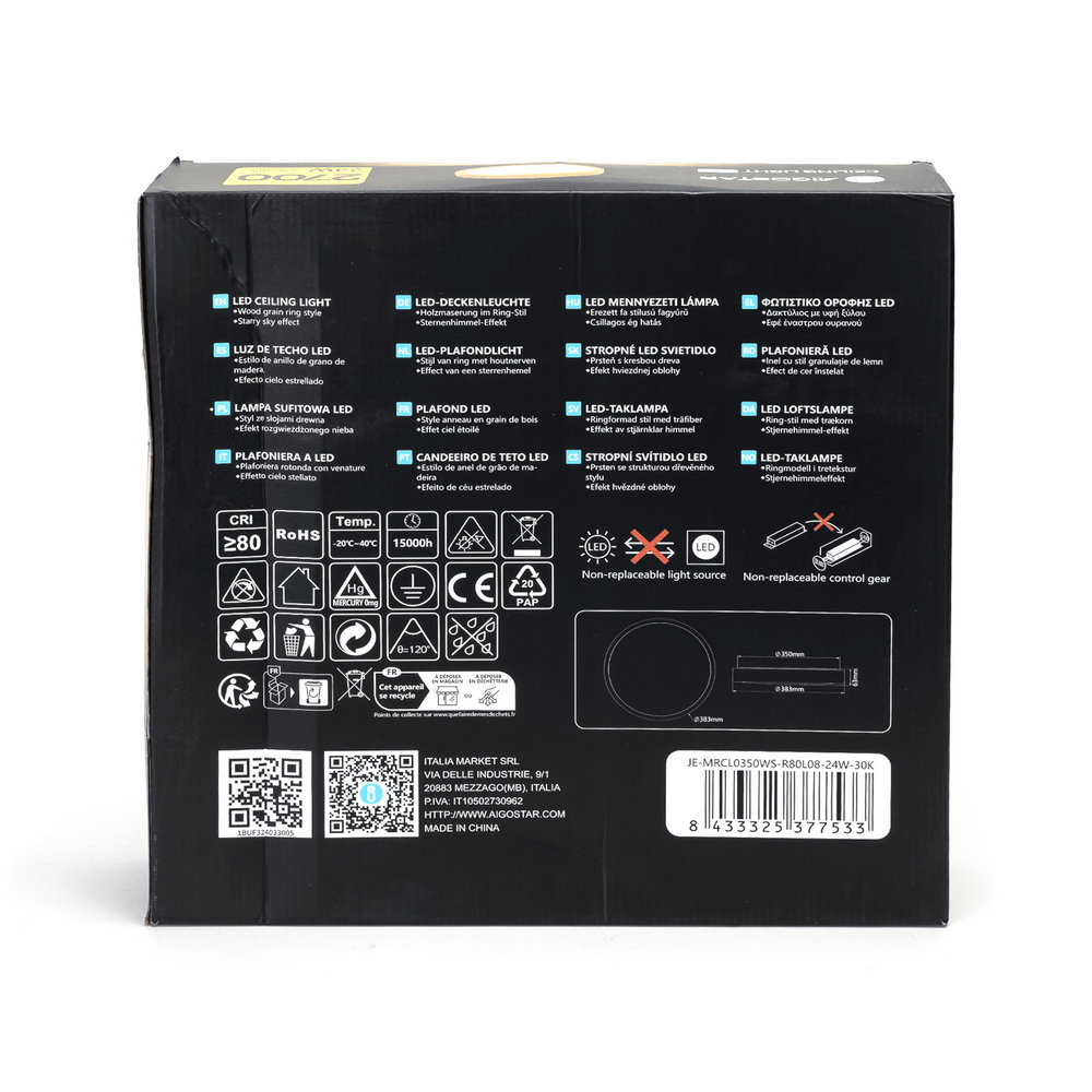 Il paralume effetto cielo stellato aggiunge un tocco decorativo inaspettato: durante l’accensione, minuscoli punti di luce brillano delicatamente, regalando alla stanza un effetto visivo incantevole. Perfetta per soggiorni, camere da letto, cucine moderne o uffici dallo stile contemporaneo, questa plafoniera si adatta facilmente a diversi contesti grazie al suo stile pulito e alla sua finitura calda e naturale.