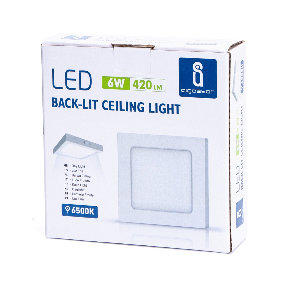 Plafoniera Led slim 6W Bianca Quadrata Bianco freddo 6500K Aigostar