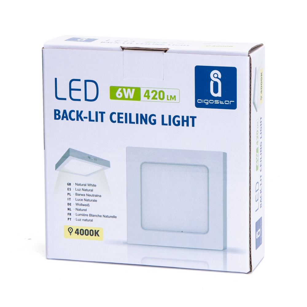 Plafoniera Led slim 6W Bianca Quadrata Bianco neutro 4000K Aigostar