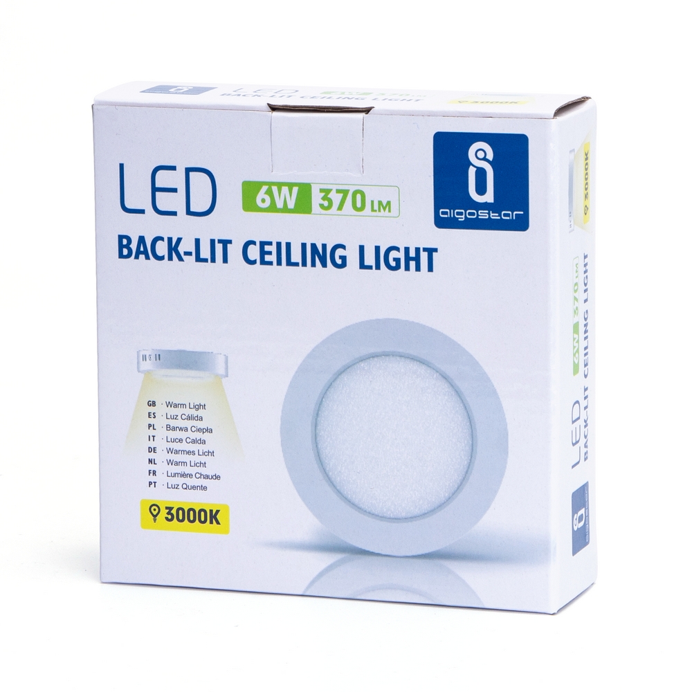 Plafoniera Led slim 6W Bianca Rotonda Bianco caldo 3000K Aigostar