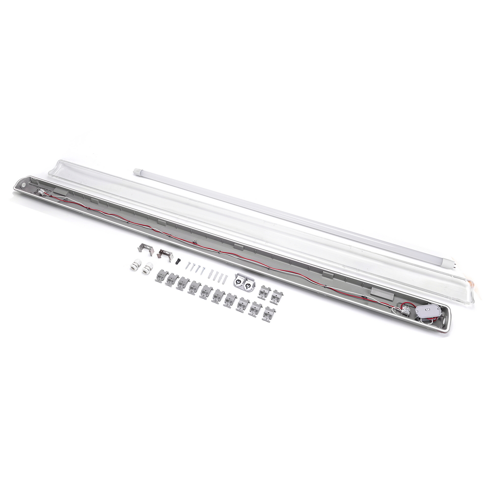 I tubi LED T8 inclusi, con attacco G13, offrono un’illuminazione brillante e uniforme, mentre garantiscono un risparmio energetico significativo rispetto alle tradizionali lampade fluorescenti. La temperatura colore bianco neutro da 4000K assicura una resa cromatica naturale e una visibilità ottimale in ogni ambiente.