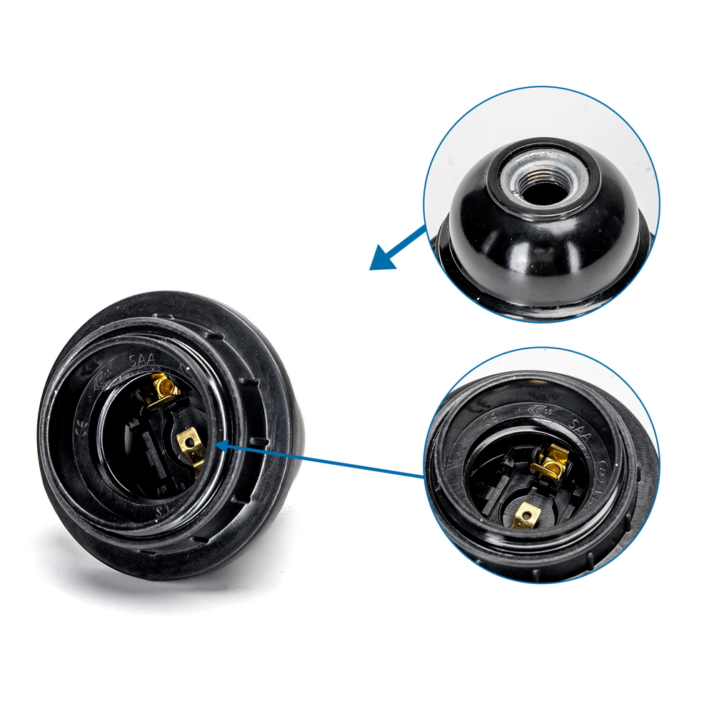 Il mezzo filetto consente un montaggio rapido e compatto, adattandosi facilmente a vari tipi di supporto o paralume. È una soluzione ideale sia per uso domestico che professionale, con una potenza supportata fino a 4A e 250V e temperatura massima di esercizio T210 ℃.