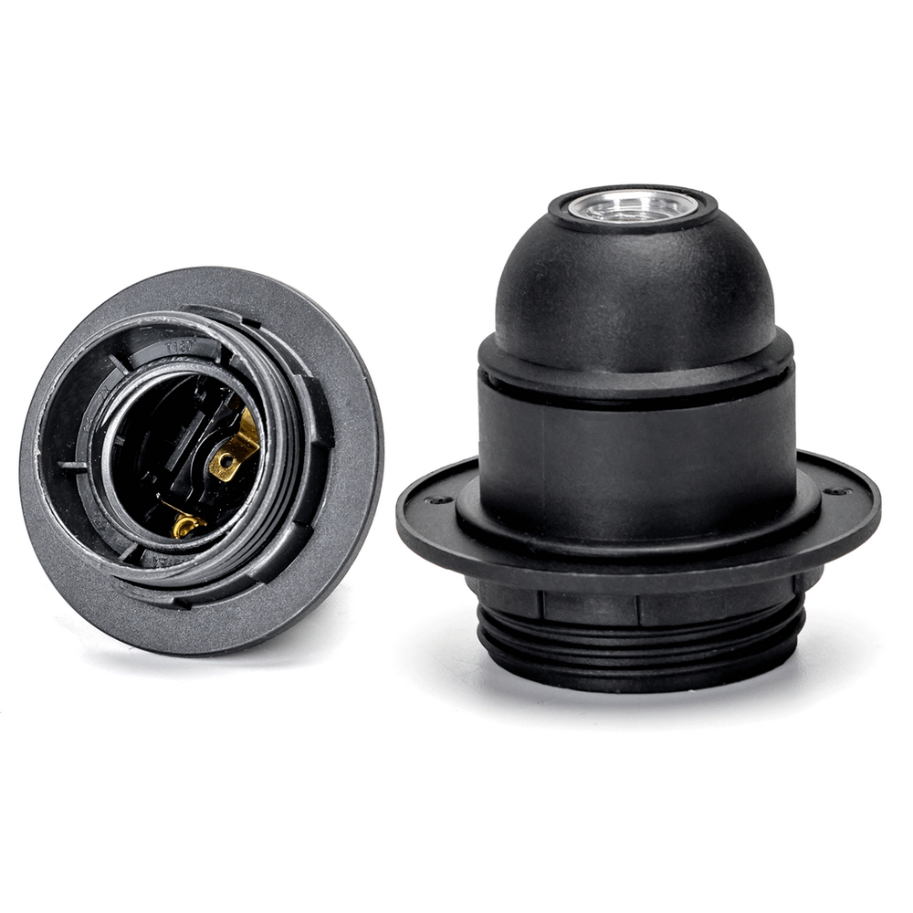 Portalampada con attacco E27 di colore nero, realizzato in plastica resistente e di alta qualità, pensato per offrire affidabilità e durata nel tempo. Il suo design sobrio e funzionale si adatta facilmente a ogni tipo di ambiente, rendendolo ideale per l’installazione di lampade e punti luce decorativi.