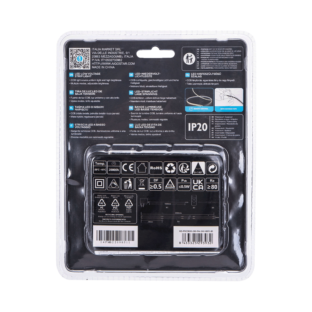 Progettata per un’installazione facile e versatile, questa striscia LED può essere utilizzata in una vasta gamma di contesti interni grazie al suo grado di protezione IP20. Che tu stia cercando di illuminare il tuo ufficio, la tua cucina, o uno spazio di lavoro, questa striscia LED fornisce una luce chiara e brillante che migliora la visibilità e l’estetica dell’ambiente. La sua lunghezza di 2 metri consente di coprire superfici ampie con un’unica installazione, riducendo la necessità di collegare più strisce insieme, inoltre è dotata di adesivo per una facile applicazione.