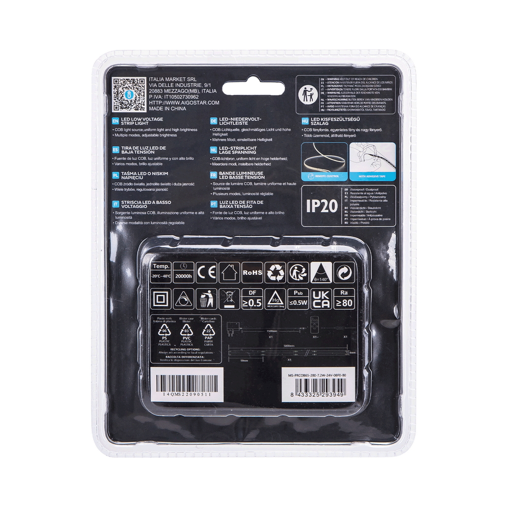 Progettata per un’installazione facile e versatile, questa striscia LED può essere utilizzata in una vasta gamma di contesti interni grazie al suo grado di protezione IP20. Che tu stia cercando di illuminare il tuo ufficio, la tua cucina, o uno spazio di lavoro, questa striscia LED fornisce una luce chiara e brillante che migliora la visibilità e l’estetica dell’ambiente. La sua lunghezza di 5 metri consente di coprire superfici ampie con un’unica installazione, riducendo la necessità di collegare più strisce insieme, inoltre è dotata di adesivo per una facile applicazione.