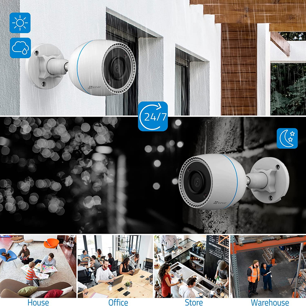 Videocamera di sorveglianza per uso domestico WiFi Full HD 1080p, dotata di microfono a cancellazione di rumore integrato che consente di ascoltare facilmente e con la massima praticità chiunque si trovi in casa da qualsiasi luogo ad esempio dal lavoro, al supermercato, al parco ecc. mediante l’App EZVIZ. La camera di sorveglianza raggiunge una visione notturna all’esterno fino a 30 metri di distanza con dettagli nitidi grazie alle potenti luci led ad infrarossi di cui è dotata. La telecamera è montata su di uno snodo regolabile a 360 gradi che permette il fissaggio a parete o a soffitto garantendo una perfetta regolazione in ogni situazione. Il dispositivo consente diverse soluzioni di archiviazione mediante il supporto di una scheda micro SD della portata massima di 256 GB (non inclusa), tramite archiviazione crittografata sul cloud. Tutte e tre le modalità possono essere utilizzate contemporaneamente per una maggiore sicurezza sul salvataggio dei dati. La trasmissione dei dati al cloud è protetta attraverso la crittografia end-to-end (crittografia AES a 128 bit – protocollo di crittografia TLS – passaggi multipli per l’autenticazione) e solo l’utente ha i codici per crittografare i propri dati ed inoltre è possibile disattivare la camera di videosorveglianza in qualsiasi momento tramite l’applicazione EZVIZ. Oltretutto attraverso l’app è possibile avere una visualizzazione live, ricezione audio, avvisi istantanei, cronologia video, zoom fino a 8x ed è compatibile con la tecnologia smart home ed è compatibile con gli assistenti vocali Amazon Alexa e Google Assistant. Per uso esterno con grado di protezione IP67.