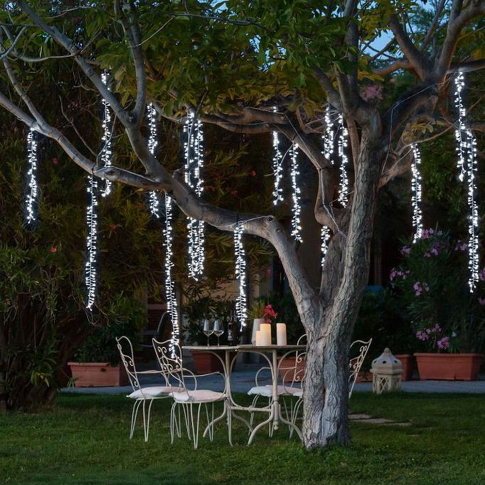 Porta la magia dell’inverno dentro e fuori casa con questa elegante tenda luminosa lunga 6 metri, illuminata da 200 LED bianco freddo. La particolarità di questa decorazione sta nel suo effetto suggestivo: le luci, disposte con grazia e movimento, scendono creando un meraviglioso effetto a grappolo, simile a una cascata di fiori di glicine in versione invernale, pura, brillante e scenografica.