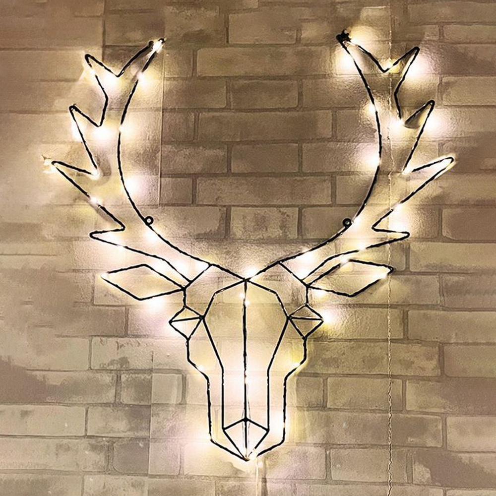 Alta circa 60 cm, questa decorazione luminosa è composta da una struttura definita con precisione da 50 LED a luce fissa nella tonalità bianco caldo, perfettamente distanziati ogni 10 cm per valorizzare al meglio i contorni delle corna e del muso della renna. Il disegno è pulito ma d’effetto, perfetto per essere esposto su pareti, porte, camini o anche all’ingresso di casa, dove potrà accogliere gli ospiti con un’atmosfera avvolgente.