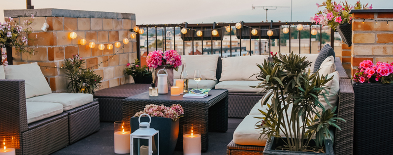 Se su un balcone di piccole dimensioni puoi sbizzarrirti poco, su quelli con grandezze maggiori puoi dare più sfogo alla fantasia e trovare tecniche di illuminazione ancora più particolari.